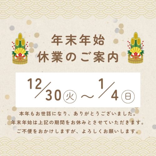 HOME > お知らせ > 年末年始休業のお知らせ > 20251230年末年始休業